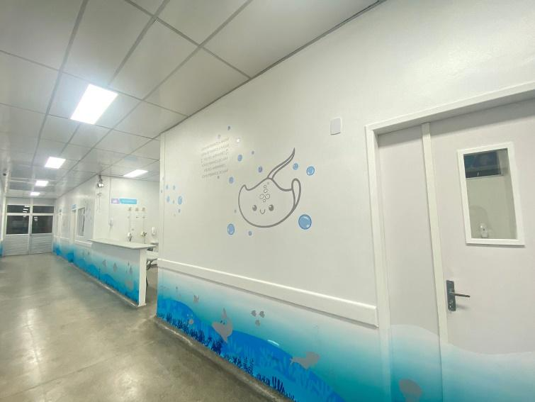 Detalhe da ala pediátrica A(mar), inspirada no universo marinho e no afeto