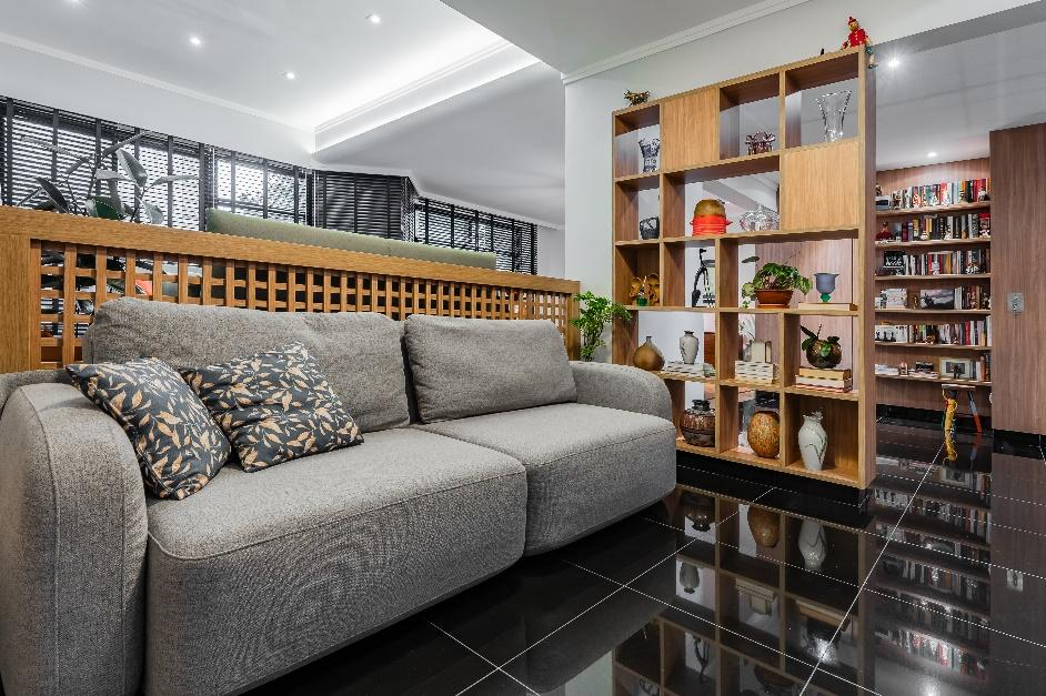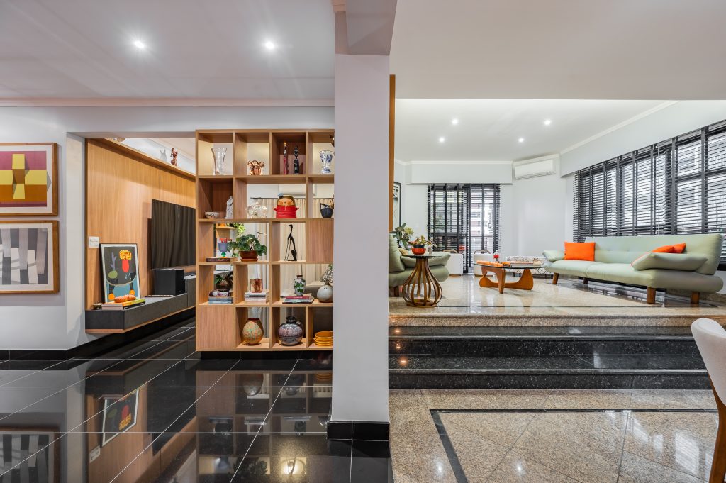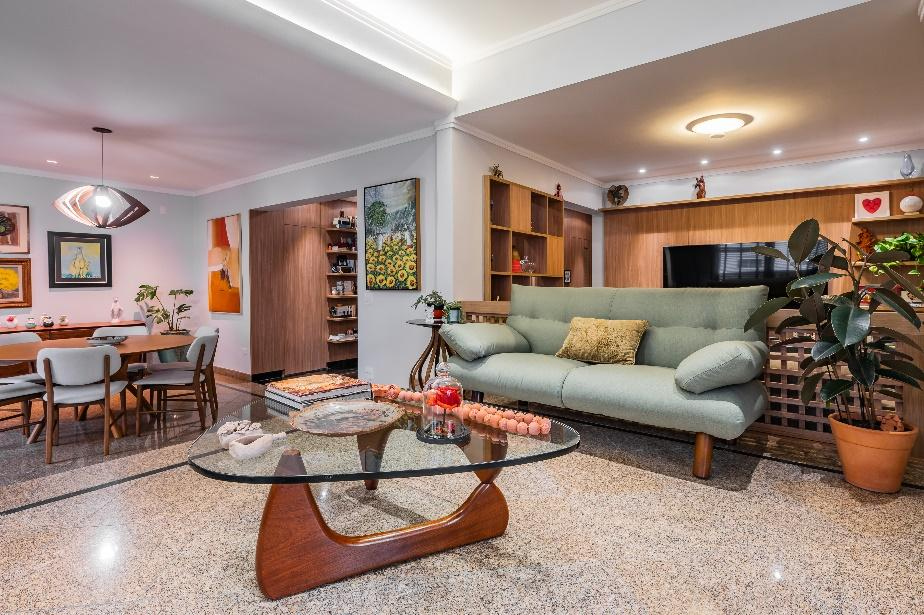 CONTEÚDO E VISIBILIDADE: Reforma de apê em Santo André integra três salas e cria espaços para objetos afetivos e livros