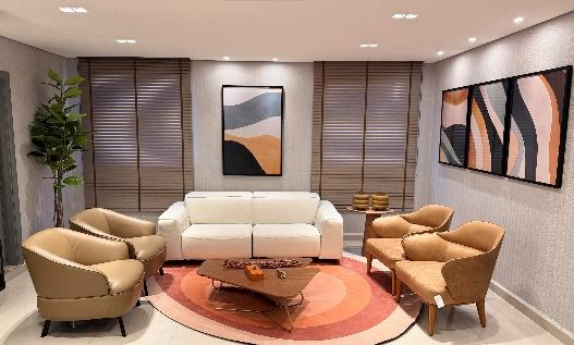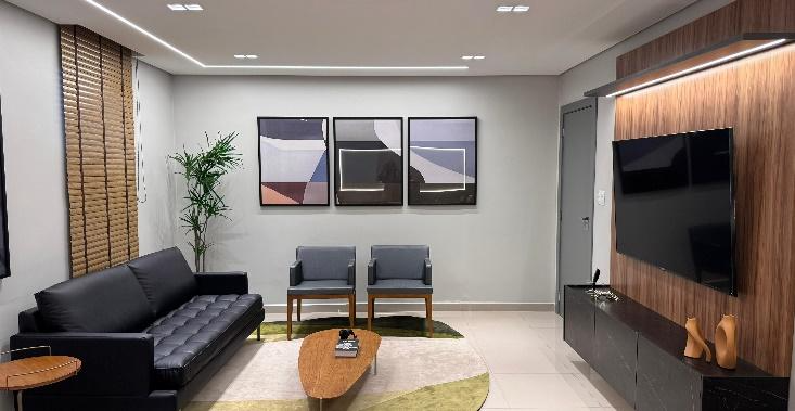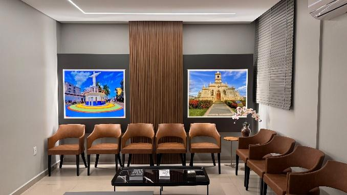 Atendendo ao pedido do cliente, ela desenvolveu um espaço sofisticado, moderno e acolhedor, pensado para oferecer um atendimento digno e eficiente à população. “Para isso, ampliei a recepção do prédio, proporcionando um ambiente mais confortável e funcional para os cidadãos”, conta a arquiteta.