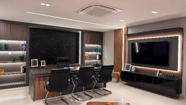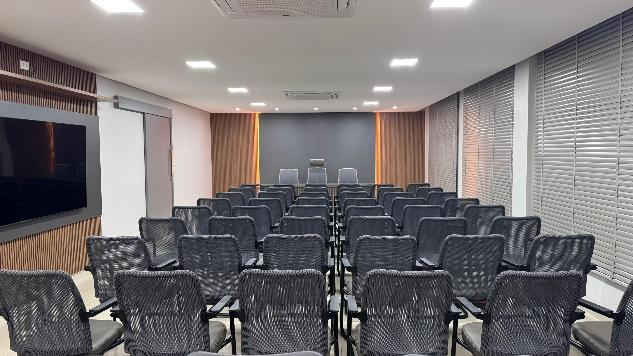 Ela também projetou um auditório com capacidade para 50 pessoas, ideal para eventos, palestras e reuniões públicas, além de uma sala de reuniões reservada, onde o prefeito poderá tratar de assuntos importantes com autoridades e demais representantes.