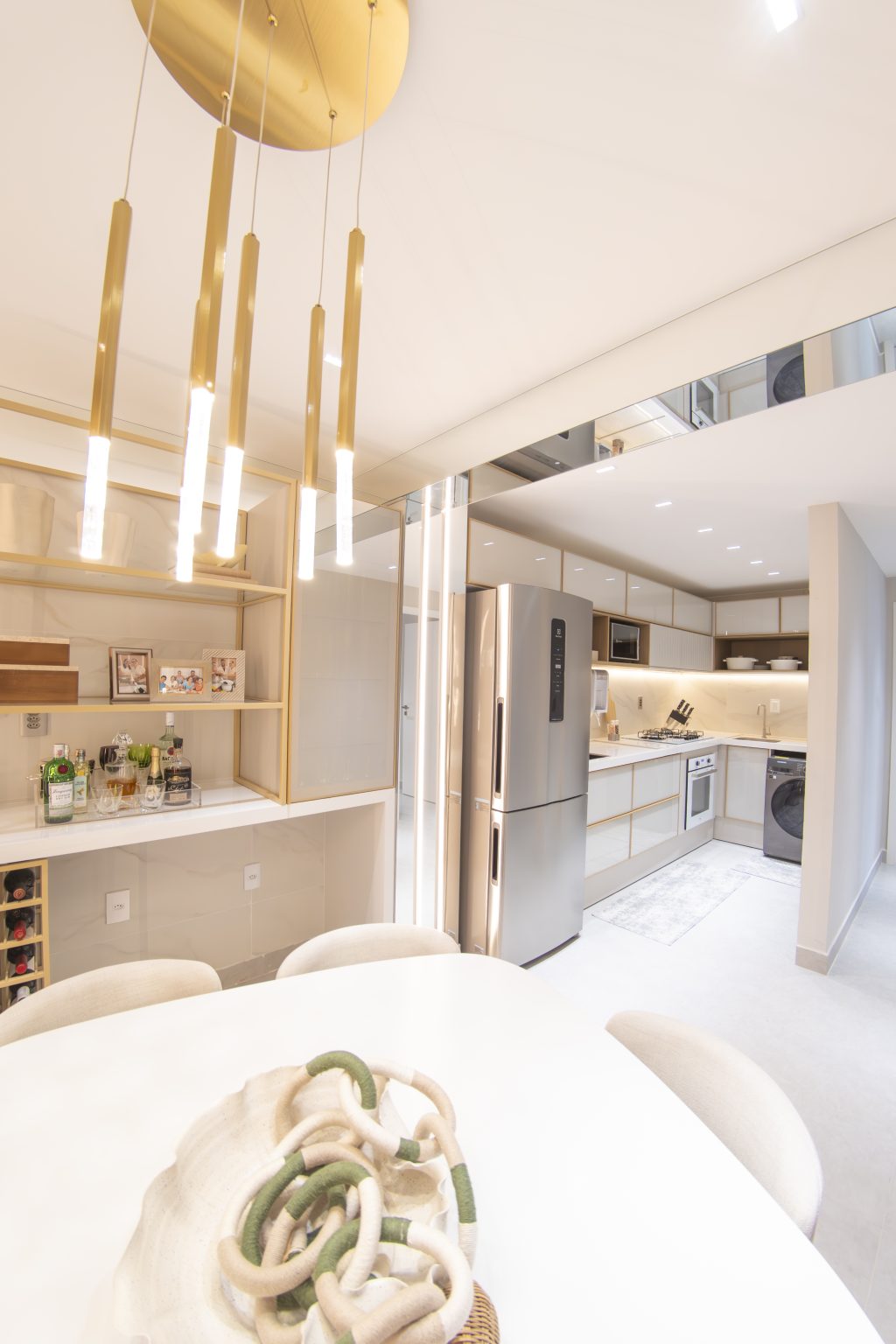 A iluminação teve papel essencial no projeto, com soluções discretas e cenários variados que criam diferentes atmosferas ao longo do dia. O resultado é um apartamento que transmite aconchego, elegância e bem-estar, ideal para momentos de descanso e convivência.