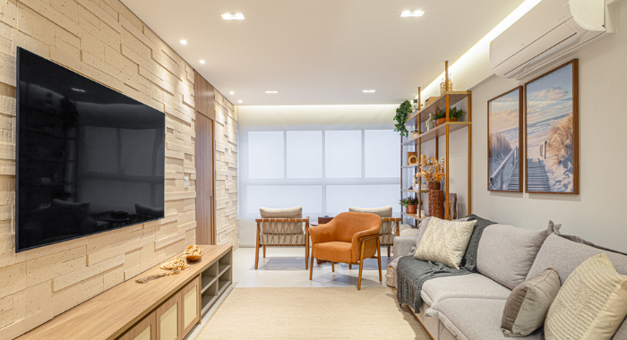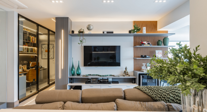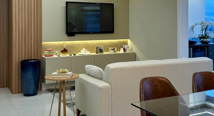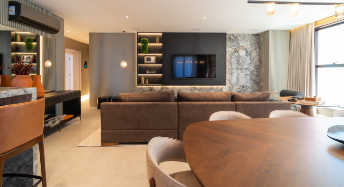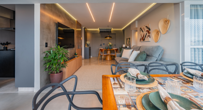 #Conteúdo e Visibilidade: projeto de design de interiores valoriza integração de ambientes e iluminação no apartamento DRM