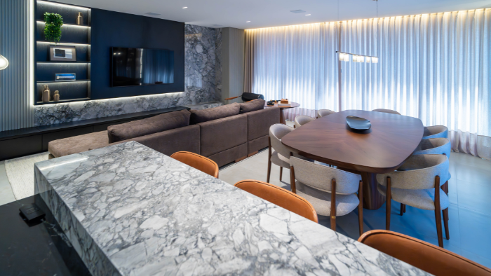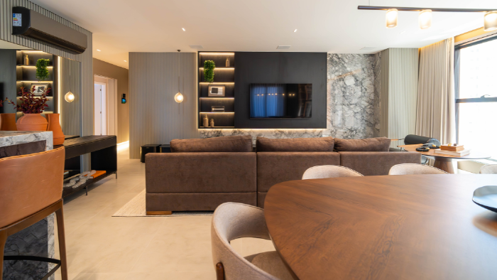 A experiência de morar no apartamento foi projetada para transmitir elegância e acolhimento.