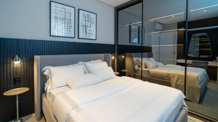 mobiliário sob medida e soluções funcionais que refletem o estilo de vida contemporâneo da construtora
