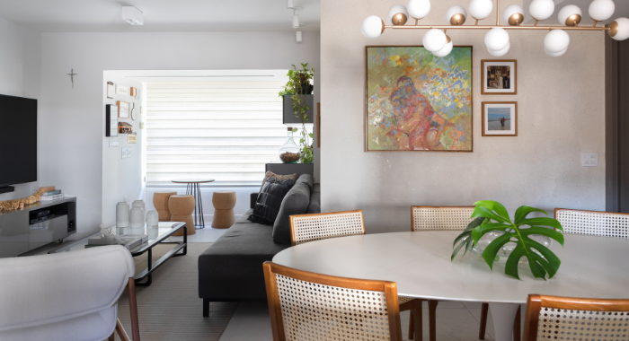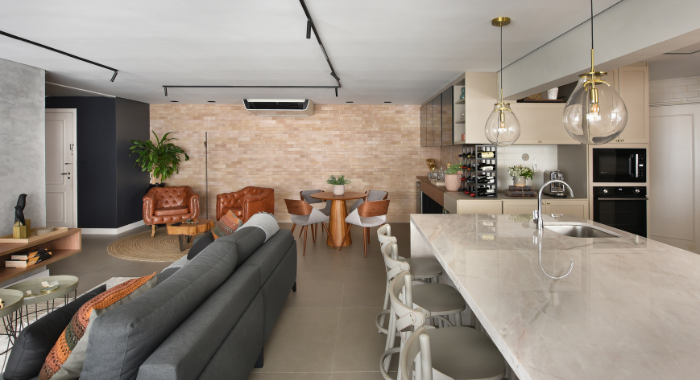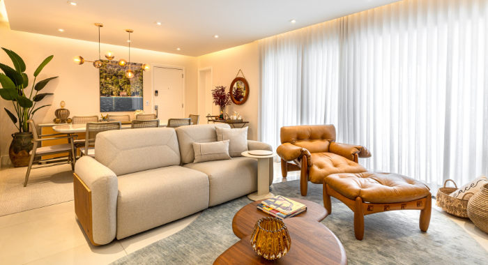 #Conteúdo e Visibilidade: projeto de interiores de Fernanda Calvo valoriza integração, bem-estar e convivência no apartamento N/C